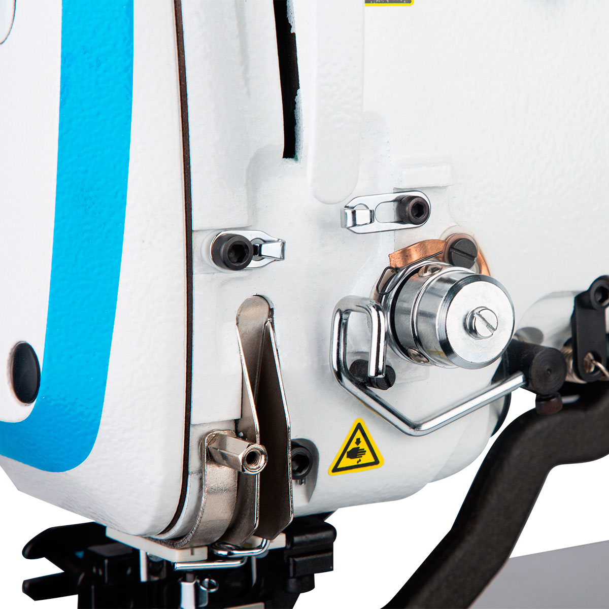 Semi-dry head to ensure clean seams. Multiple cutting function, different types of buttonholes available. Cooling system for longer machine life.