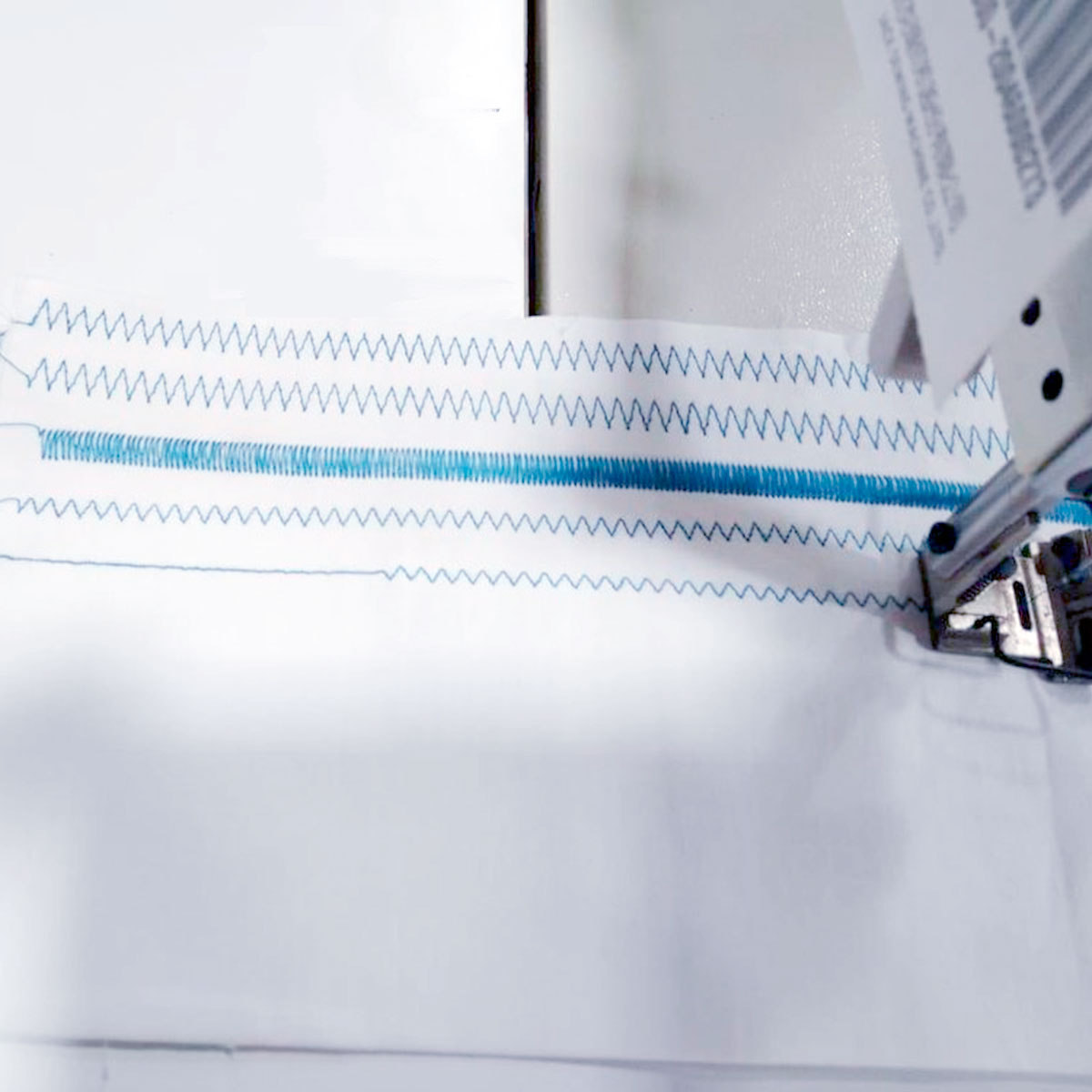 Easy adjustment of the zig zag width: With a knob it is possible to adjust the needle bar oscillation according to the user's needs. 3 point zig zag available with this pattern.