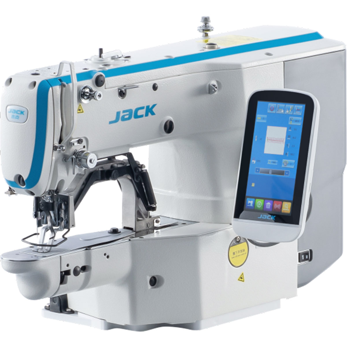 The Jack JK-T1900GH is a high-speed electronic riveting machine designed to sew tacks and other patterns (with 100 already pre-programmed in memory) on a wide variety of heavy and thick materials.