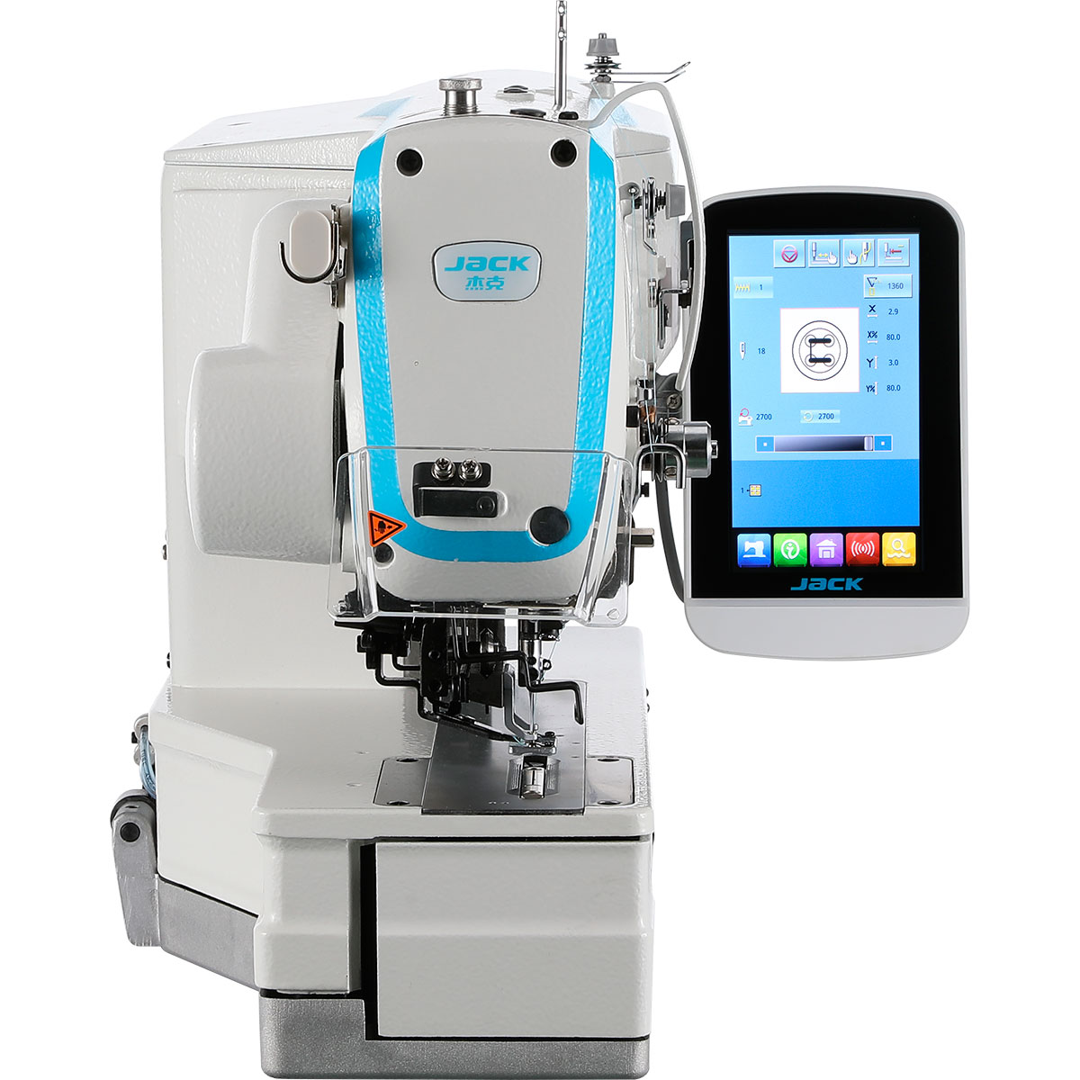 Multifunctional buttonhole machine, electronically controlled programmed, driven by AC servo motor, with features such as low vibration, low noise. High efficiency and excellent sewing quality.